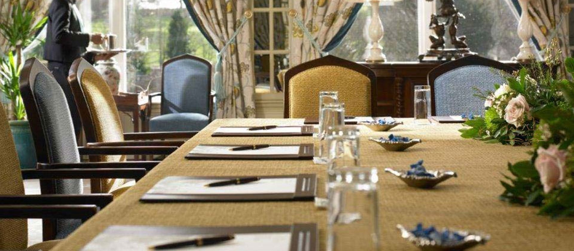 With its 30-foot ceilings, height-adjustable staging and freight-size, arched, mahogany doorways, the conference centre at Dromoland Castle is ideal for a wide variety of events, including product launches, exhibitions and vehicle unveiling. The Brian Boru Centre extends the elegance of castle life to your business seminar, banquet, exhibition or conference, ensuring that every event becomes a prestigious occasion.