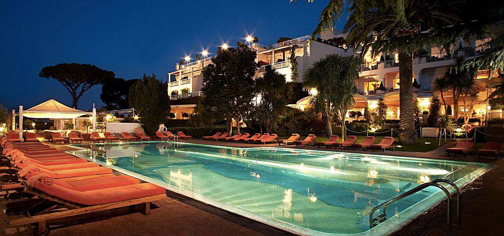 Capri Palace Hotel & Spa is a luxury hotel of refined elegance just steps away from the charming village of Anacapri with magnificent views over the Gulf of Naples and Ischia Island. Its 82 rooms and suites, some with private pool and garden, are decorated in Mediterranean style, offering comfort and privacy. This five star hotel is the setting for a fine selection of contemporary art, the so called “White Museum”: here you can sense the passion for art everywhere. The Capri Palace features three restaurants, L’Olivo – an elegant and refined restaurant boasting Two Michelin stars, Il Riccio an exclusive One Michelin star restaurant and beach club close to the famous Blue Grotto, and the more informal bistrot Ragu with a stunning sea view terrace.