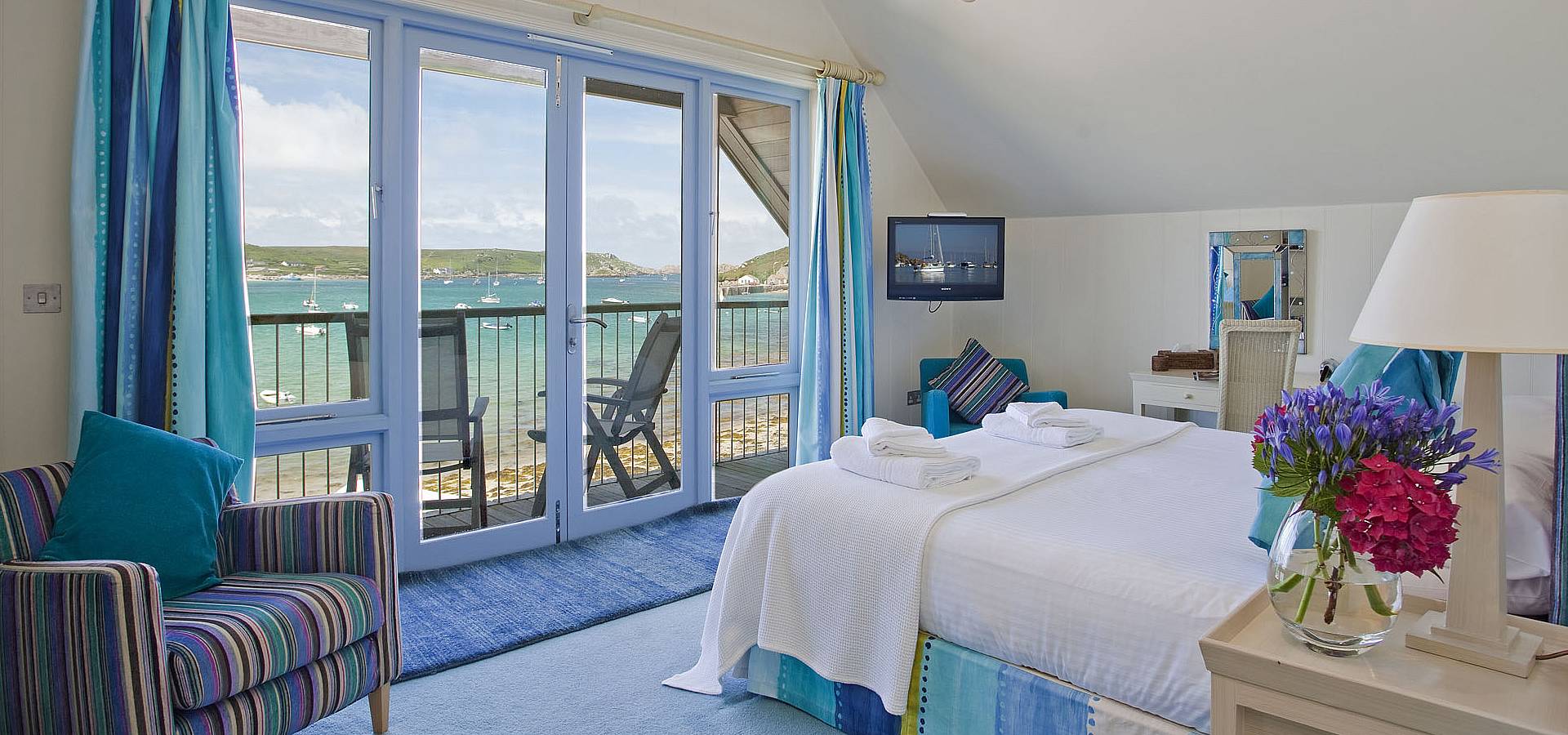 The kitchen is fully equipped so those staying can create culinary delights, while the bedrooms are found on the first floor level. The master bedroom sits above the living area and has its own balcony and also frames the amazing scenery beyond – looking out towards the neighbouring island of Bryher and the Bishop Rock lighthouse in the distance.